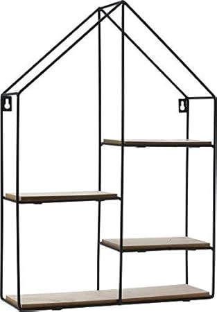 50186 Wandregal Haus Metall Holz S 3 Schwarz Natur 1