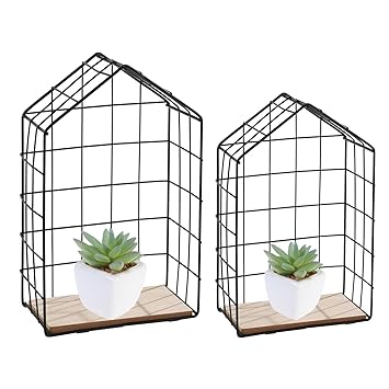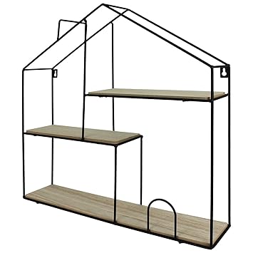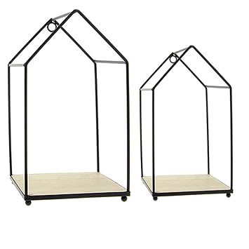 Finehome 2er Set Wandregal Metallregal Hangeregal Haus Holz