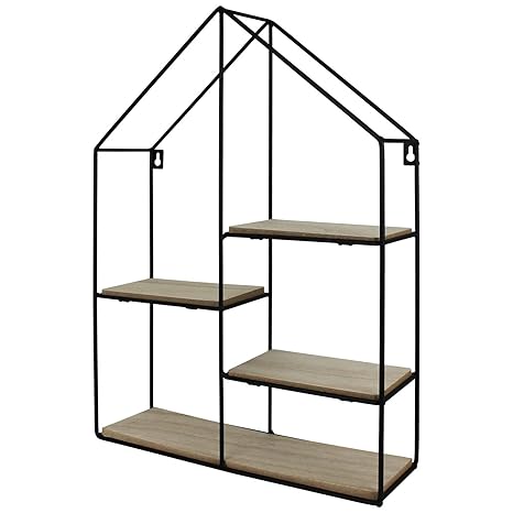 Spetebo Design Wandregal Haus 50x35 Cm 4 Holz Ablagen Metall Hangeregal Setzkasten Regal