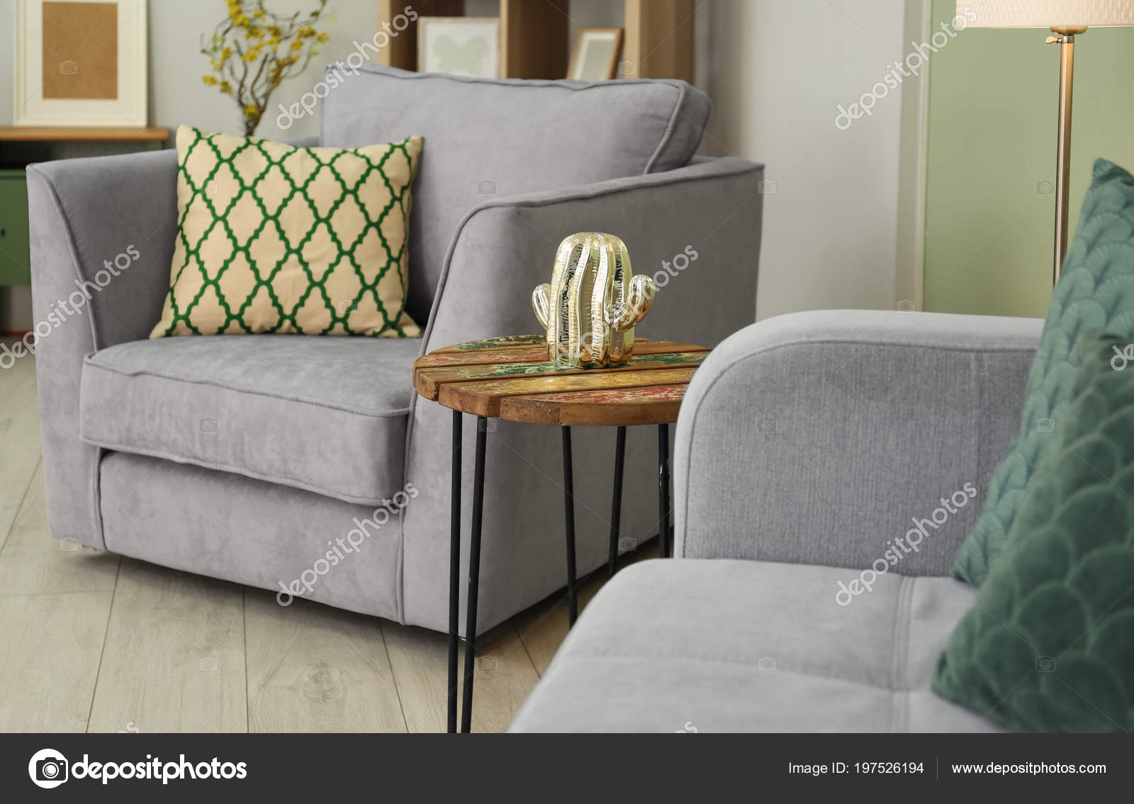 Gemutliche Und Modern Grau Sessel Und Lampe Hangen In Den